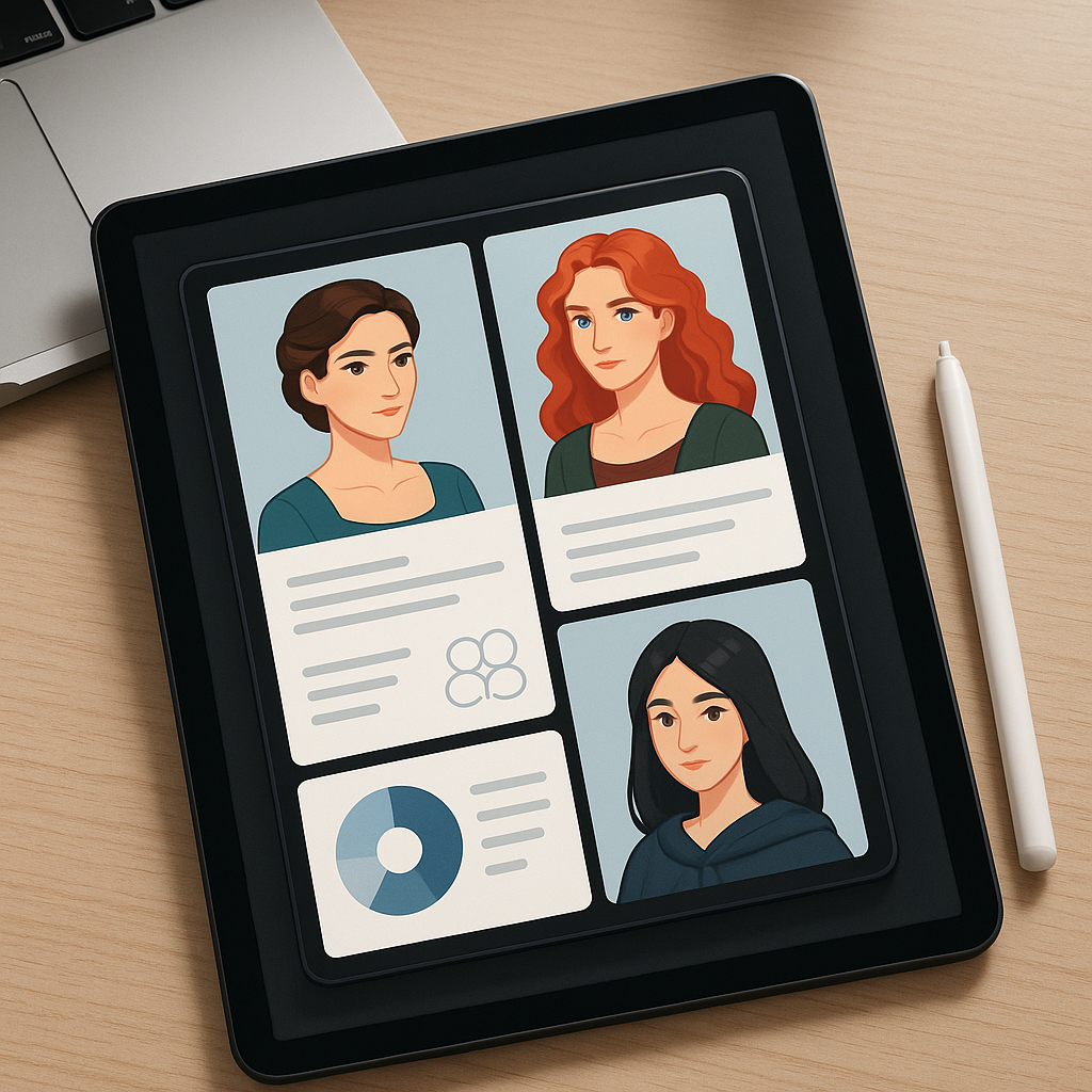 • Mini-illustrations or moodboards capturing the character’s vibe.